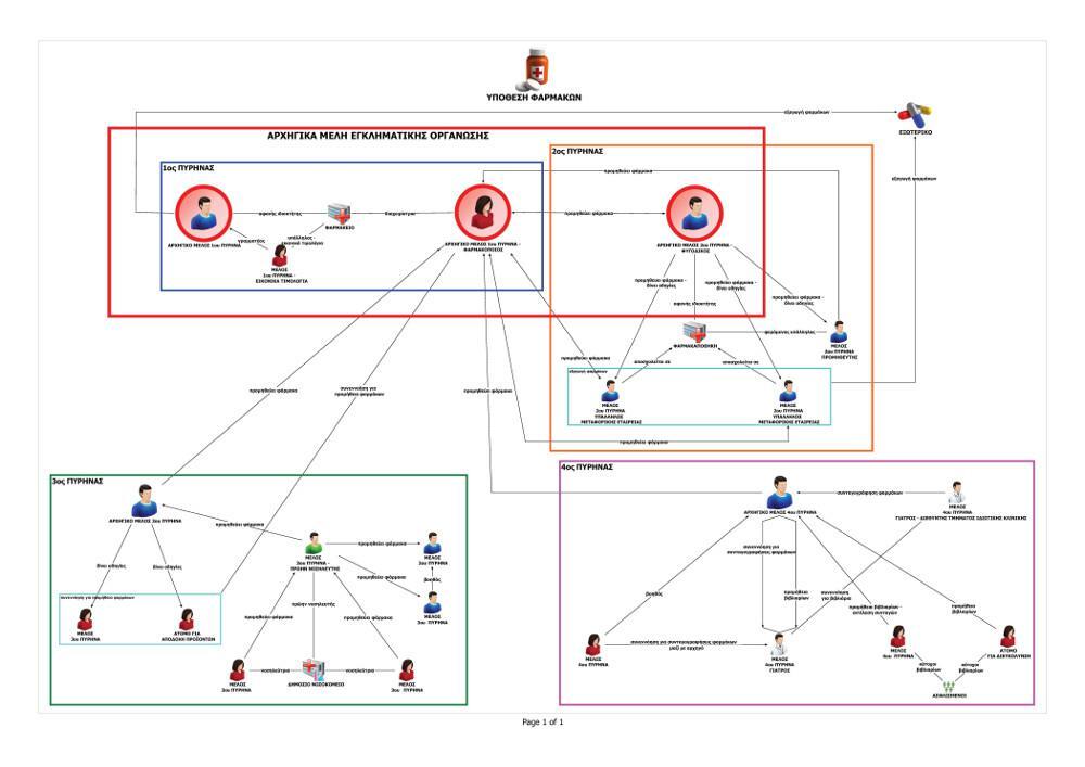 Είχε κεντρικό ρόλο στην υλοποίηση των στόχων της οργάνωσης, καθώς αναλάμβανε την παράνομη προμήθεια των φαρμάκων από τα μέλη των άλλων πυρήνων και την αποθήκευση και εξαγωγή αυτών στο εξωτερικό, συμφώνα με τις παραγγελίες και τις συμφωνηθείσες τιμές πώλησης.