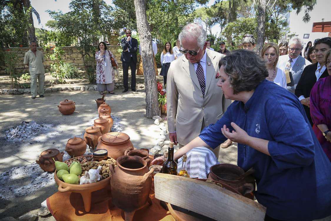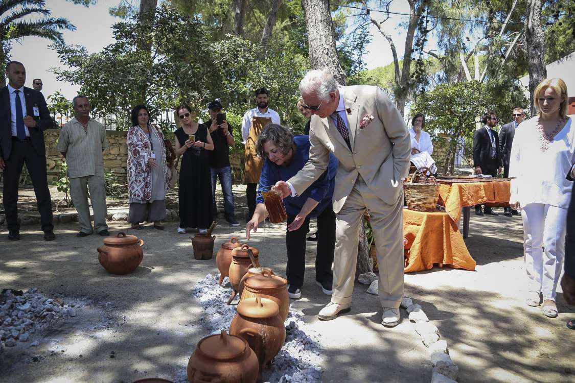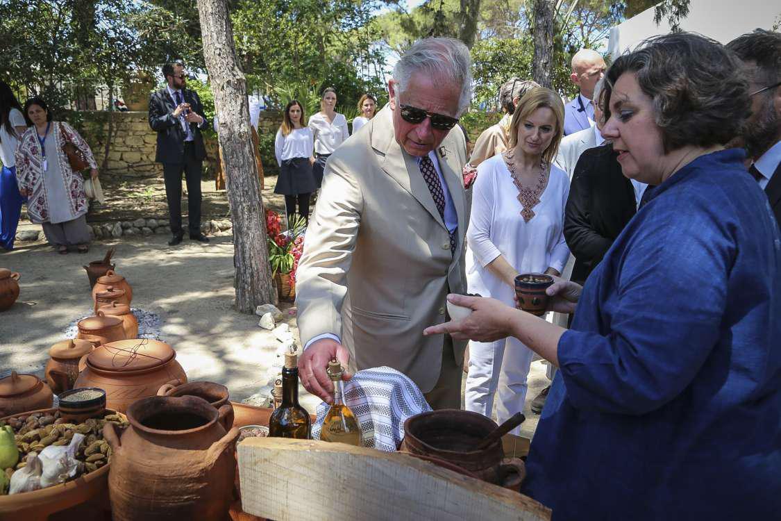 Επίσης τόσο ο Κάρολος όσο και η Καμίλα, πολύ ευδιάθετοι, «έσπασαν» ξανά το πρωτόκολλο και χαιρέτησαν κόσμο δια χειραψίας, κάτι που συνέβη και αργότερα, αφού όπως μετέδωσε η ΕΡΤ, ο πρίγκιπας Κάρολος δοκίμασε φαγητά στις Αρχάνες! Κάτι που επίσης απαγορεύεται από τους βασιλικούς κανόνες!