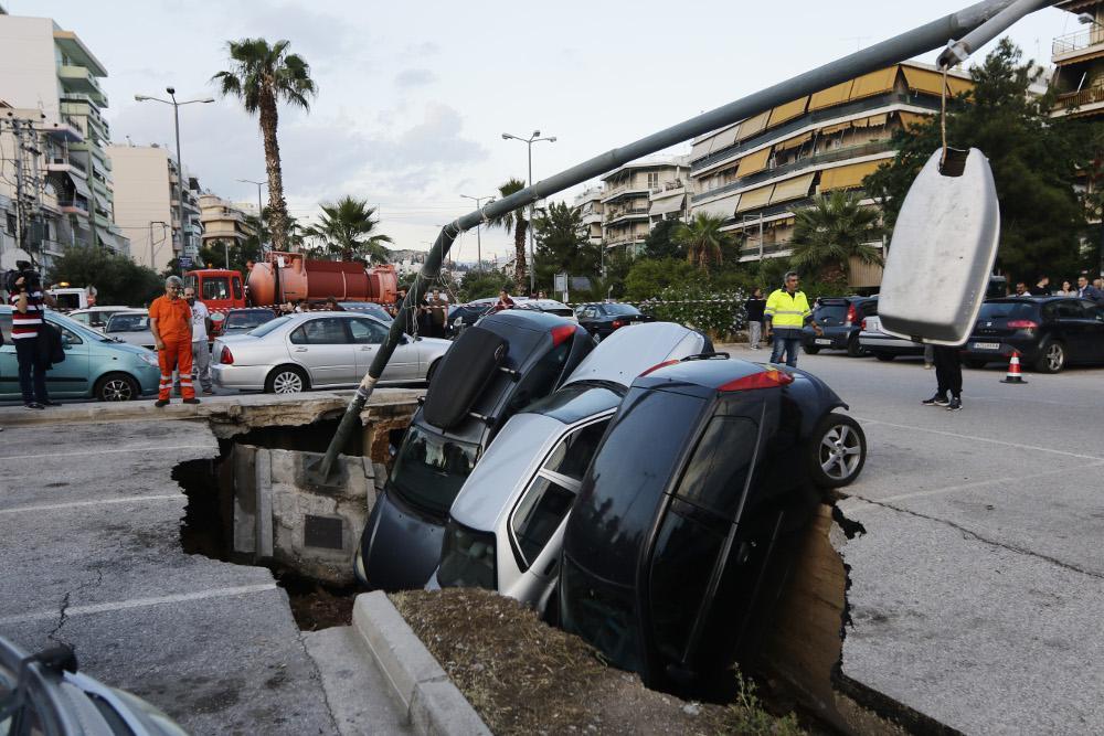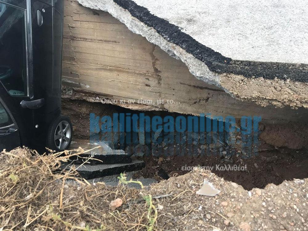 Σύμφωνα με το kallitheaonline.gr, η υποχώρηση του οδοστρώματος παρέσυρε αρκετά αυτοκίνητα με τους ιδιοκτήτες να αναζητούν ήδη από που θα αποζημιωθούν.