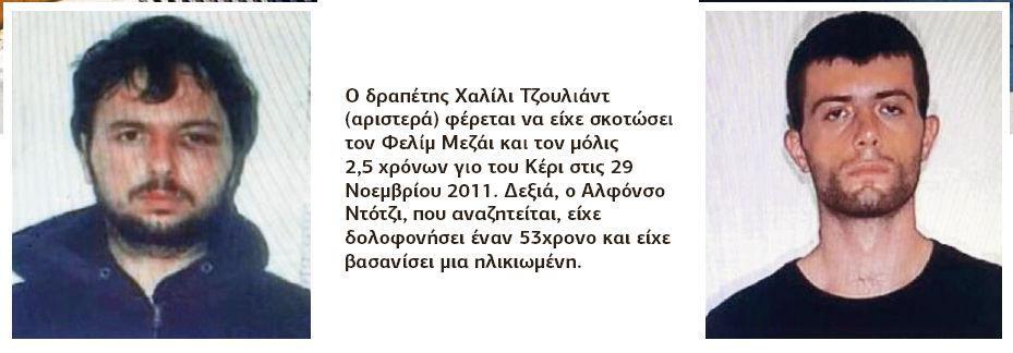 Ο ένας από τους δραπέτες είναι ο 35χρονος Αλβανός Halili Juliand, γνωστός ως «Νίκο» ή «Τζουλιάνο», o οποίος είχε λάβει την εντολή, σύμφωνα με τους αστυνομικούς, από το γνωστό κακοποιό Βασίλη Βαρελά για τη δολοφονία του Φελίμ Μεζάι και του μόλις 2,5 χρόνων γιου του Κέρι στις 29 Νοεμβρίου 2011. Ο δολοφόνος είχε πυροβολήσει με κυνηγετικό όπλο στο πρόσωπο τον πατέρα, δεν είχε δει ότι δίπλα του καθόταν ο 2,5 χρόνων γιος του, τον οποίο δεν δίστασε να σφαγιάσει.