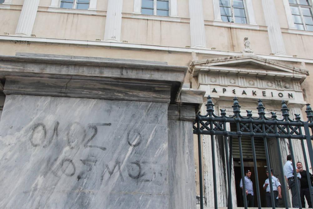 Οι κουκουλοφόροι πέταξαν μπογιές και έσπασαν το μηχάνημα ελέγχου για την είσοδο των ατόμων, ενώ έσπασαν και τα τζάμια στα παράθυρα. Είναι απορίας άξιο γιατί στο Συμβούλιο της Επικρατείας υπήρχε μόνο ένας(!) αστυνομικός και το κτίριο ήταν αφύλαχτο τη στιγμή μάλιστα που υπήρχε εν εξελίξει συνεδρίαση.