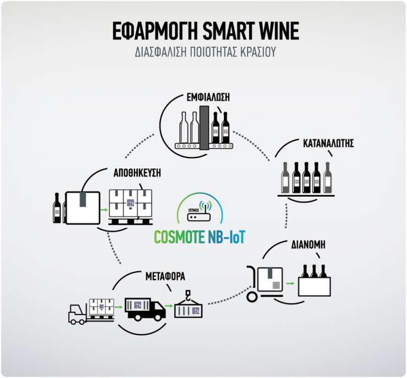 Η εφαρμογή ‘‘Smart Wine’’ επιτρέπει την παρακολούθηση των συνθηκών ολόκληρης της διαδρομής του κρασιού, από τον παραγωγό, στο διανομέα, μέχρι τον τελικό καταναλωτή. Ειδικοί αισθητήρες καταγράφουν σε πραγματικό χρόνο τη θερμοκρασία, την υγρασία και τη φωτεινότητα στο οινοποιείο Kυρ-Γιάννη, τις συνθήκες στην αποθήκη του διανομέα στη Θεσσαλονίκη και σε εστιατόριο στο κέντρο της πόλης, ενώ έχουν εγκατασταθεί αισθητήρες που παρακολουθούν και τη μεταφορά του.
