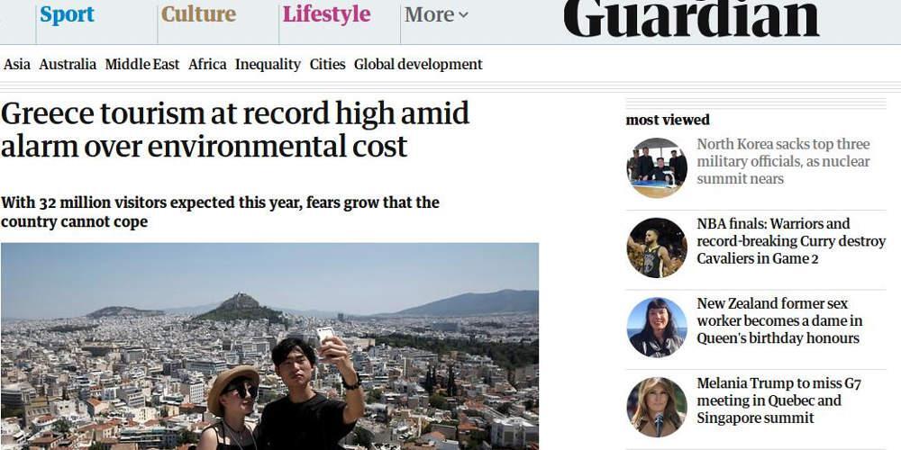 Άρθρο για το τουριστικό επίτευγμα που αναμένεται να πραγματοποιήσει η Ελλάδα φιλοξενεί ο Guardian. Συγκεκριμένα, φέτος προβλέπεται να καταφτάσουν στη χώρα μας, 32 εκατομμύρια τουρίστες, στοιχείο ρεκόρ που το Βρετανικό μέσο χαρακτηρίζει «Εξαιρετικό».