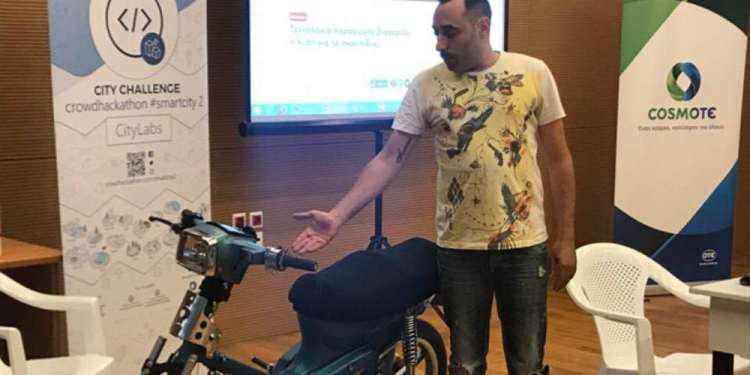 Ο κ Ηλιάδης, κάτοικος Κρήτης διακρίθηκε στο CityLab Ηρακλείου, στα πλαίσια του μεγάλου μαραθωνίου της ΚΕΔΕ που έχει στόχο να συγκεντρώσει προτάσεις επίλυσης αστικών προβλημάτων μέσω των νέων τεχνολογιών.