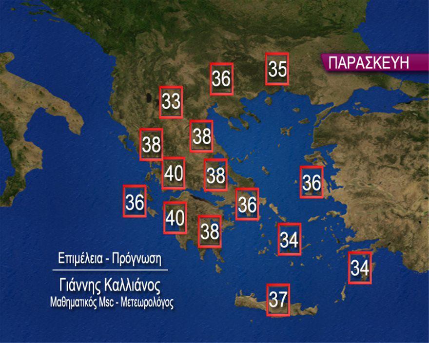 Δείτε χάρτες με τις μέγιστες θερμοκρασίες που θα σημειωθούν τοπικά στα διάφορα διαμερίσματα της χώρας: