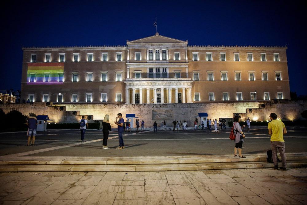 Τα χρώματα από την σημαία του «ουράνιου τόξου», προβλήθηκε σε μια γωνιά του κτιρίου της Βουλής κατόπιν σχετικής απόφασης, την περασμένη εβδομάδα.