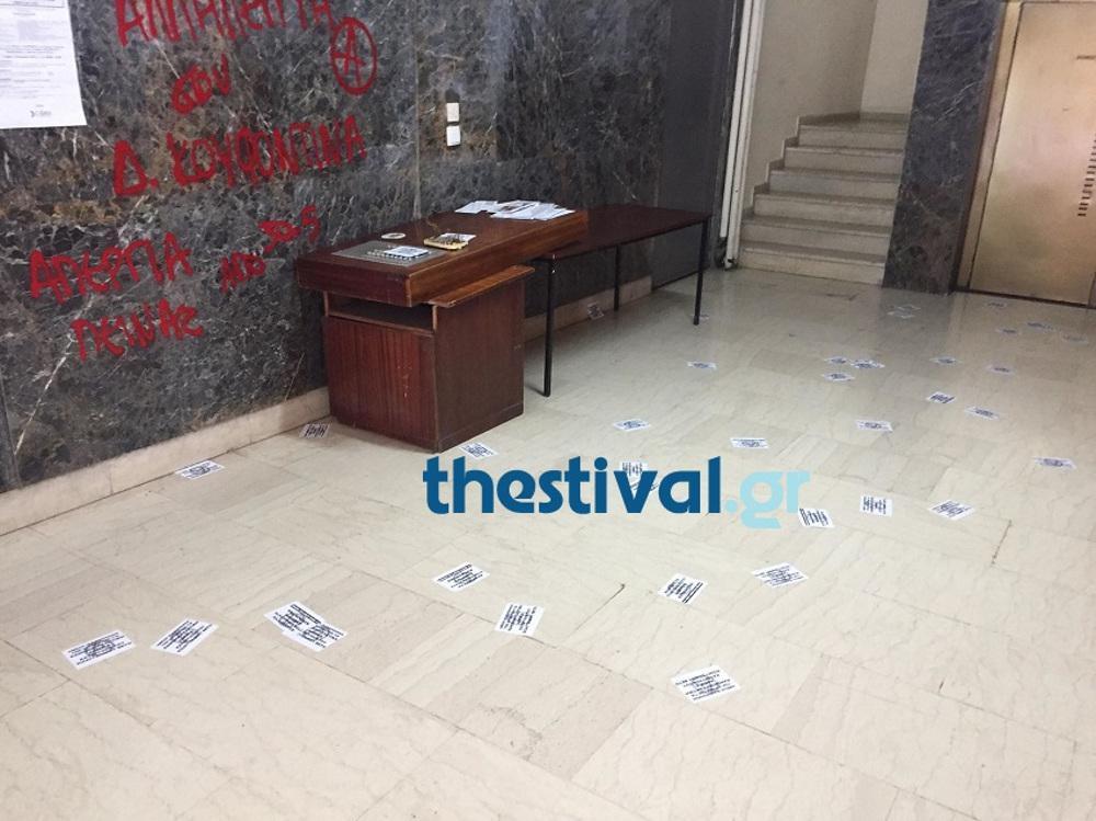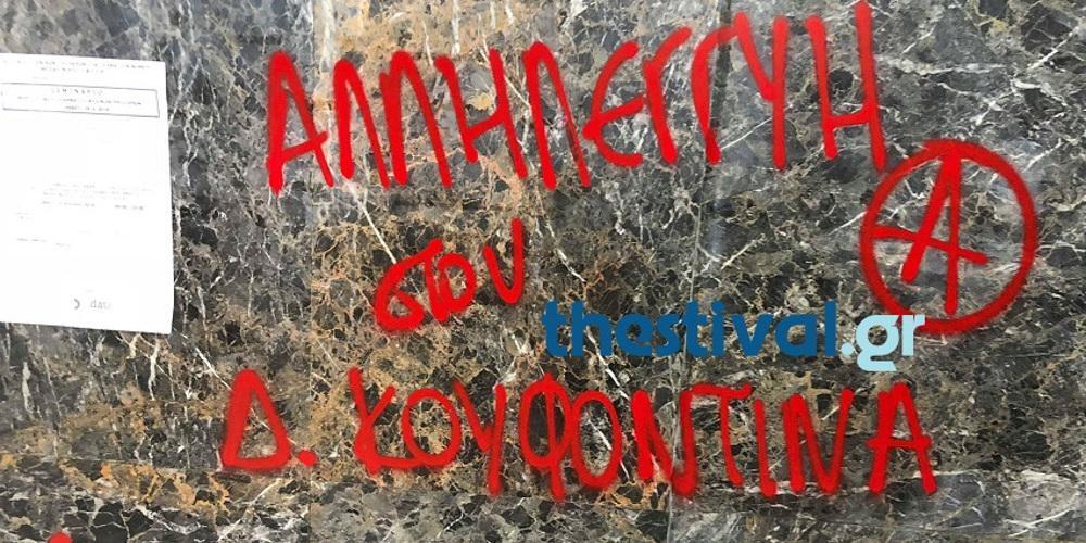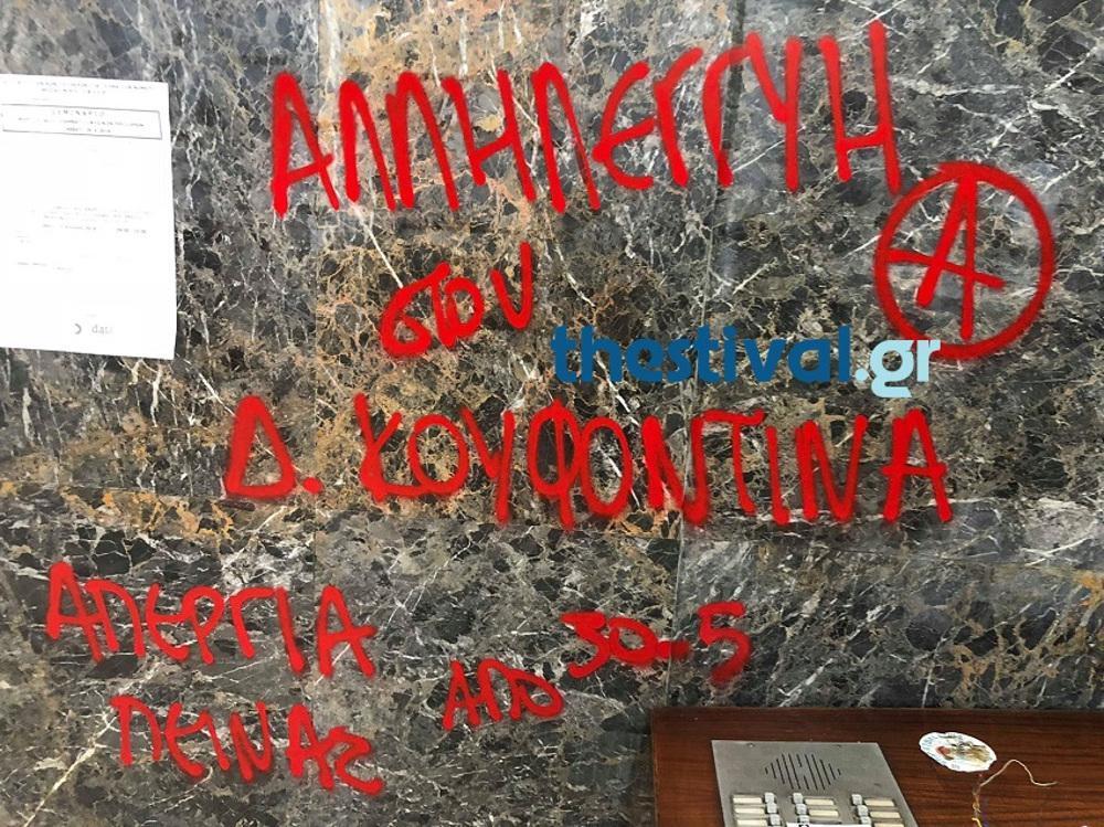 Σύμφωνα με τις πρώτες πληροφορίες, τέσσερα άτομα μπήκαν στο κτίριο και έγραψαν με σπρέι συνθήματα υπέρ του Δημήτρη Κουφοντίνα, πέταξαν τρικάκια και στη συνέχεια αποχώρησαν.