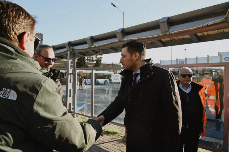 Συναντώντας δεκάδες οδηγούς στον σταθμό μετεπιβίβασης του Νέου Σιδηροδρομικού Σταθμού, εξέφρασε τις ευχαριστίες του «για την πλάτη που έβαλαν» ώστε να διατηρηθεί ο ρυθμός των μετακινήσεων στην πόλη. Παράλληλα, ανακοίνωσε ότι η Πολιτεία θα προχωρήσει σε βελτιώσεις στη σύμβαση και στις συνθήκες εργασίας, με έμφαση στις προσλήψεις οδηγών που θα ενισχύσουν το μεταφορικό έργο. «Περισσότεροι οδηγοί σημαίνει περισσότερα δρομολόγια για τους Θεσσαλονικείς», ανέφερε χαρακτηριστικά. Ο πρόεδρος του ΟΑΣΘ Κώστας Ταγγίρης και ο πρόεδρος του Συνδικάτου Εργαζομένων Γιάννης Δήμκας υπογράμμισαν την καλή συνεργασία με το υπουργείο και τη διαρκή προσπάθεια βελτίωσης των αστικών συγκοινωνιών, τονίζοντας ότι «οι εργαζόμενοι αποδεικνύουν για ακόμη μία φορά ότι στηρίζουν την πόλη».