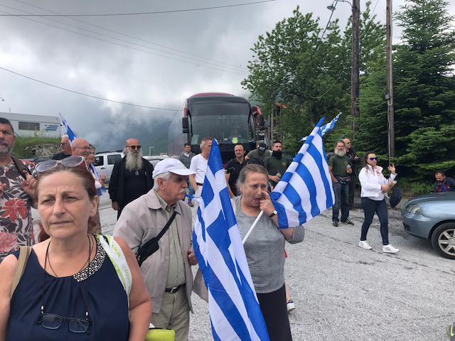 Δεκάδες λεωφορεία έφτασαν στο σημείο και διαδηλωτές, με ελληνικές σημαίες στα χέρια, βροντοφώναξαν «Όχι» στην εκχώρηση του ονόματος της Μακεδονίας.