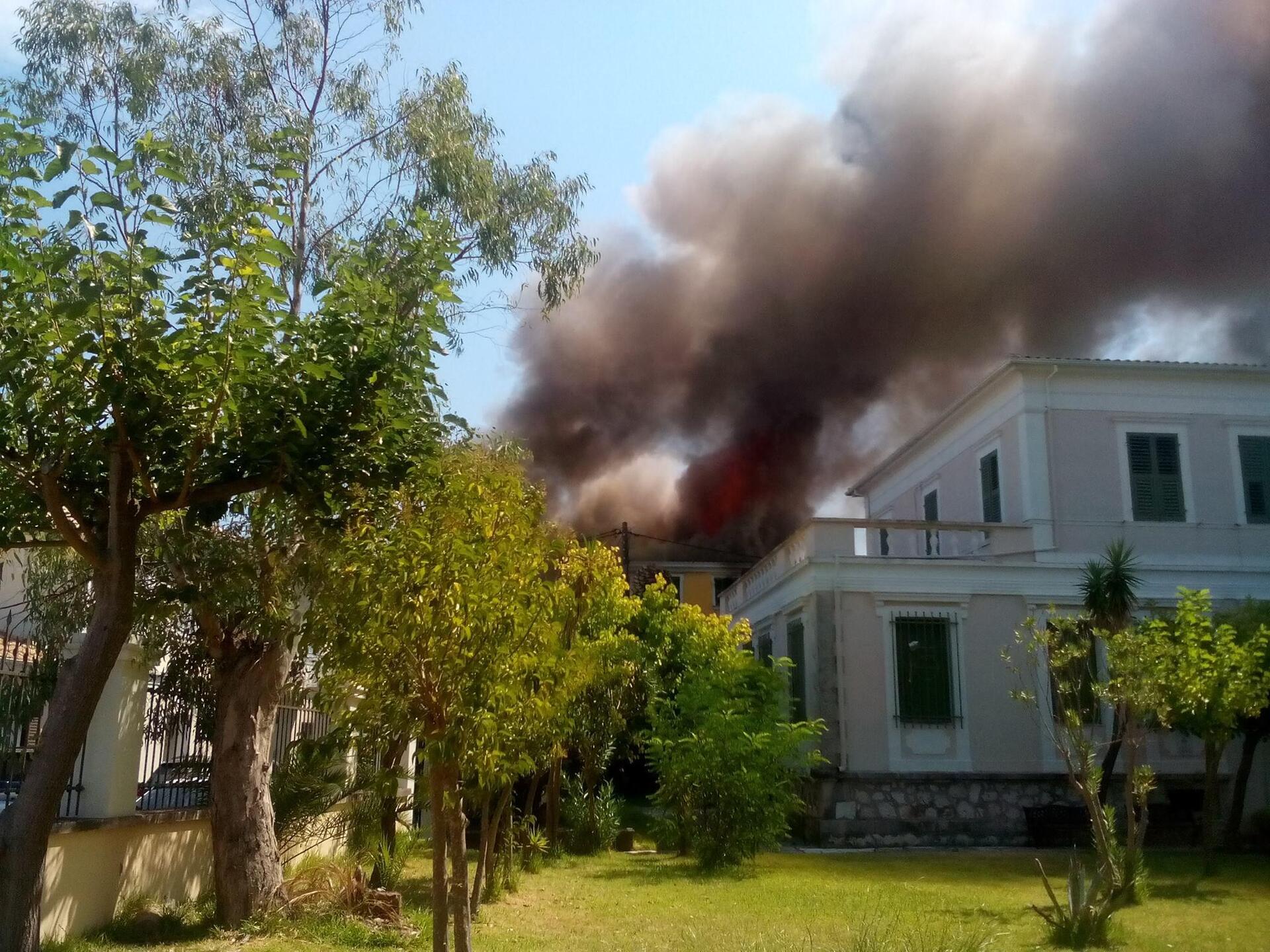 Στρώμα καπνού έχει καλύψει το νησί του Ιονίου, ενώ μεγάλη δύναμη πυροσβεστών έδωσε μάχη με τις φλόγες προκειμένου η φωτιά να μην επεκταθεί και κινδυνέψουν ανθρώπινες ζωές.