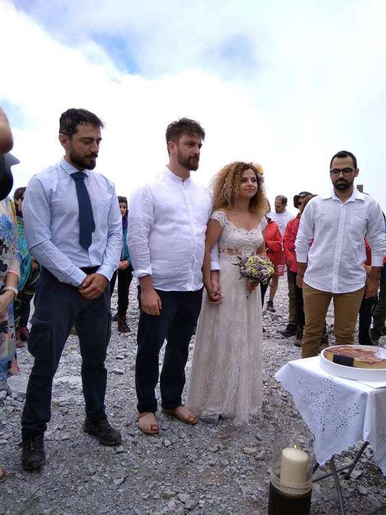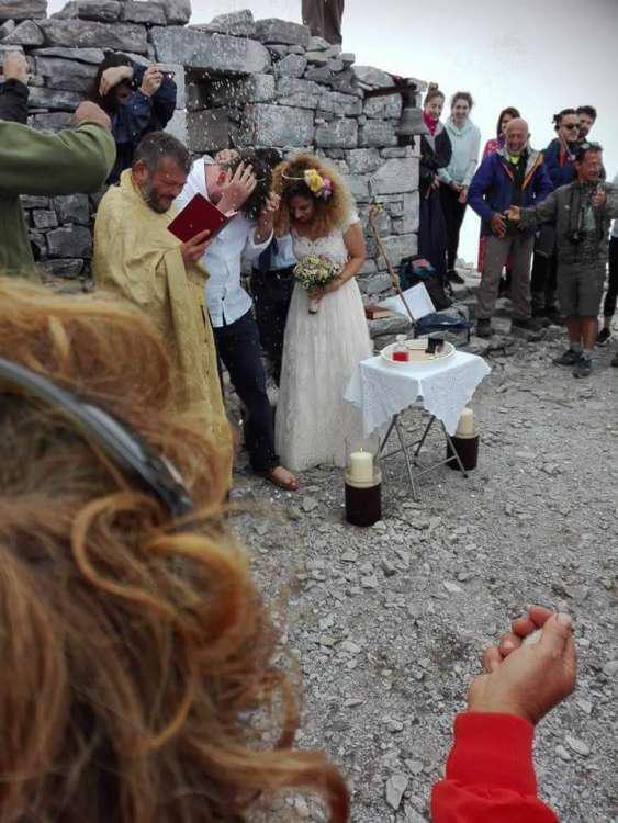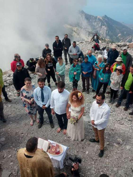 Και οι δυο είναι μέλη του Ορειβατικού Συλλόγου Καλαμάτας και φυσιολάτρες, κάλεσαν τους φίλους τους στο εμβληματικό βουνό της Μεσσηνίας για να έλθουν με αυτό τον πρωτότυπο και αξέχαστο τρόπο «εις γάμου κοινωνίαν», παίρνοντας ενέργεια από το βουνό!