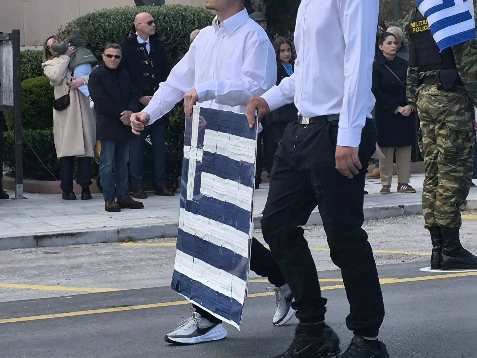 Παρά τον δυνατό αέρα πλήθος κόσμου χειροκρότησε τις ένοπλες δυνάμεις και τους μαθητές.