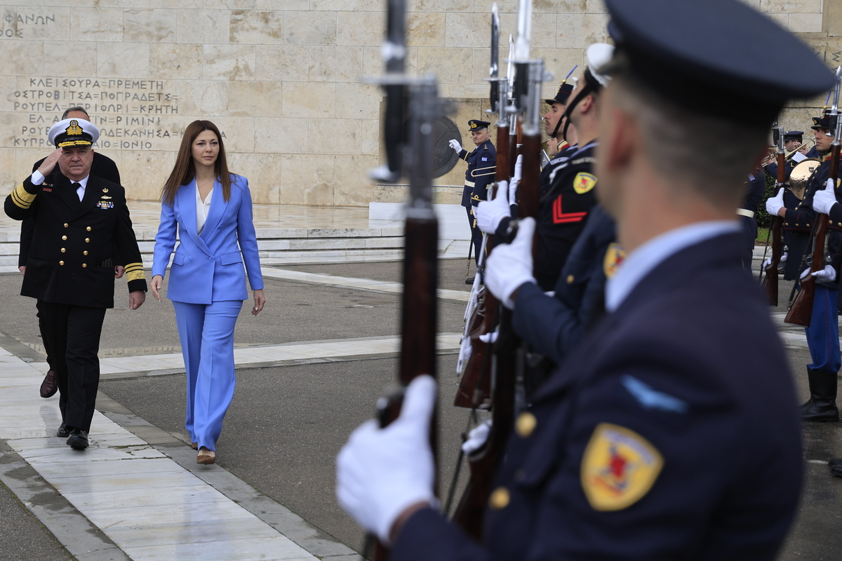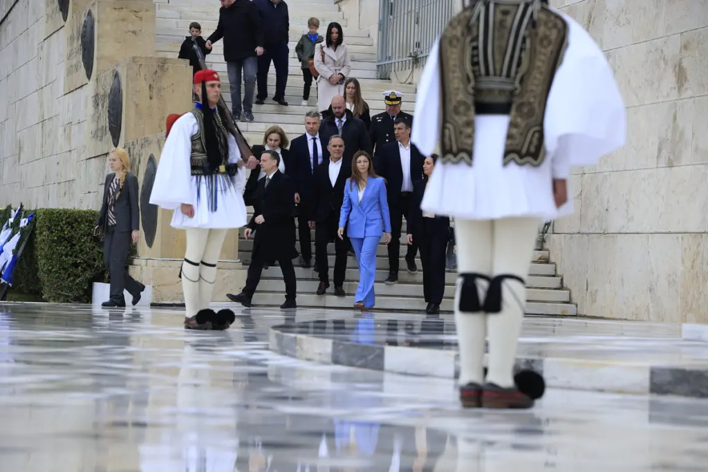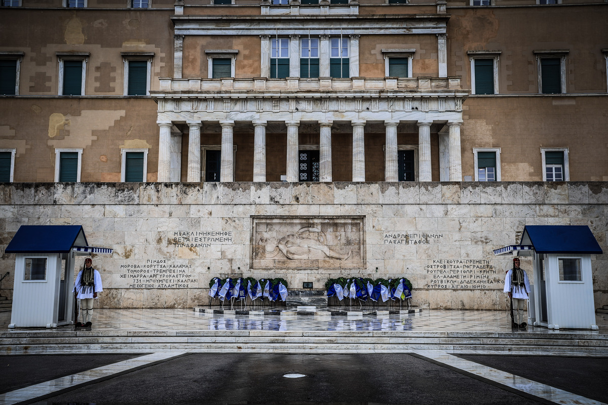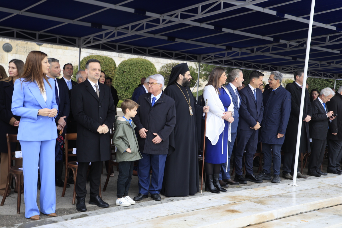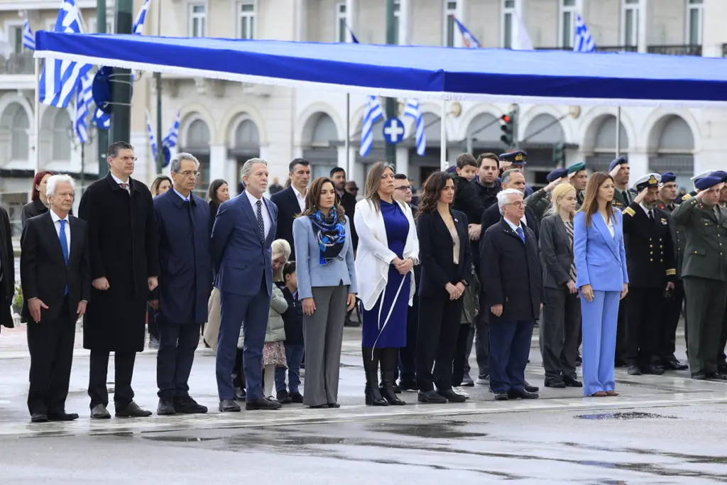 Νωρίτερα, της παρέλασης προηγήθηκε κατάθεση στεφάνων στο μνημείο του Αγνώστου Στρατιώτη, μεταξύ άλλων από την Υπουργό Παιδείας, Θρησκευμάτων και Αθλητισμού, Σοφία Ζαχαράκη, την πρόεδρο του κόμματος «Πλεύσης Ελευθερίας», Ζωή Κωνσταντοπούλου και τον δήμαρχο Αθηναίων, Χάρη Δούκα, καθώς επίσης και η ανάκρουση του εθνικού ύμνου.