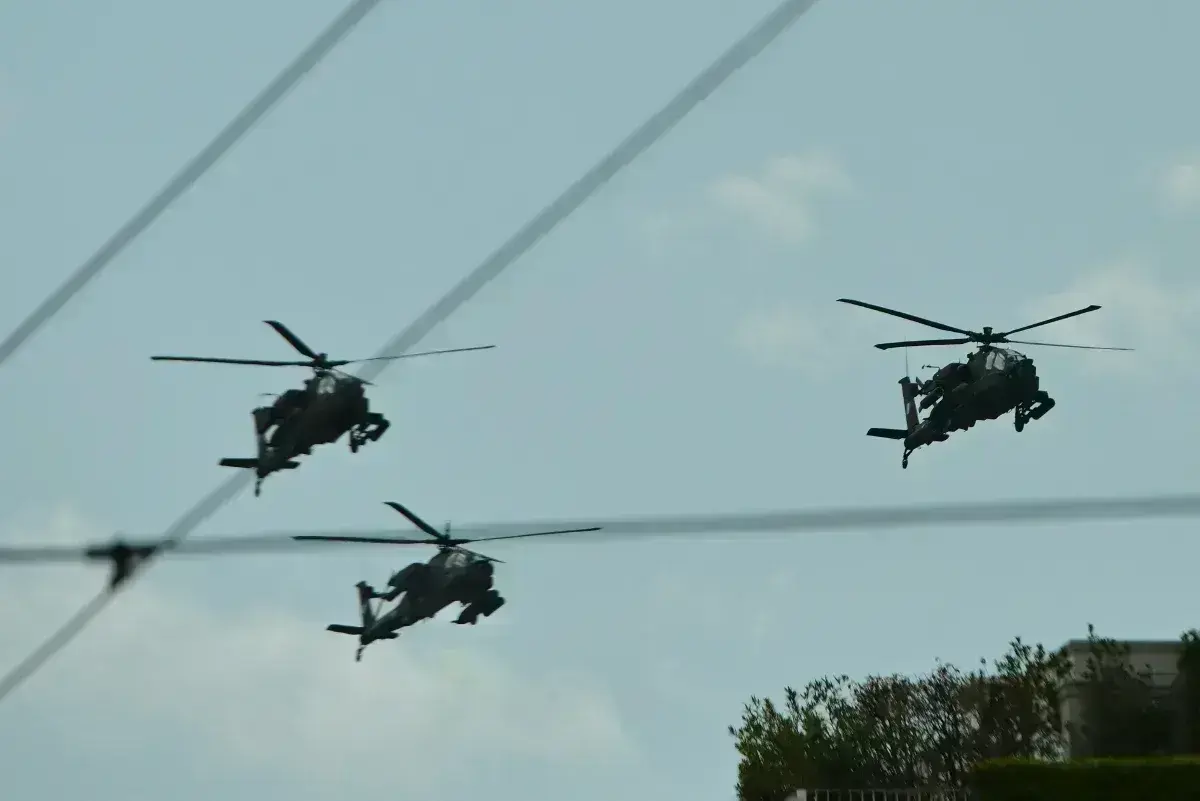 Τον ουρανό της Αθήνας γέμισαν ελικόπτερα ΑΗ-64 APACHE (ΑΠΑΤΣΙ)1, OH-58D KIOWA WARRIOR (ΚΑΪΟΒΑ ΓΟΥΟΡΙΟΡ), UH-1H (ΧΙΟΥΙ), NH90 (ΕΝ ΕΙΤΣ ΕΝΕΝΗΝΤΑ) και CH-47D CHINOOK (ΣΙΝΟΥΚ), κατά την μεγάλη στρατιωτική παρέλαση για την 25η Μαρτίου 1821.