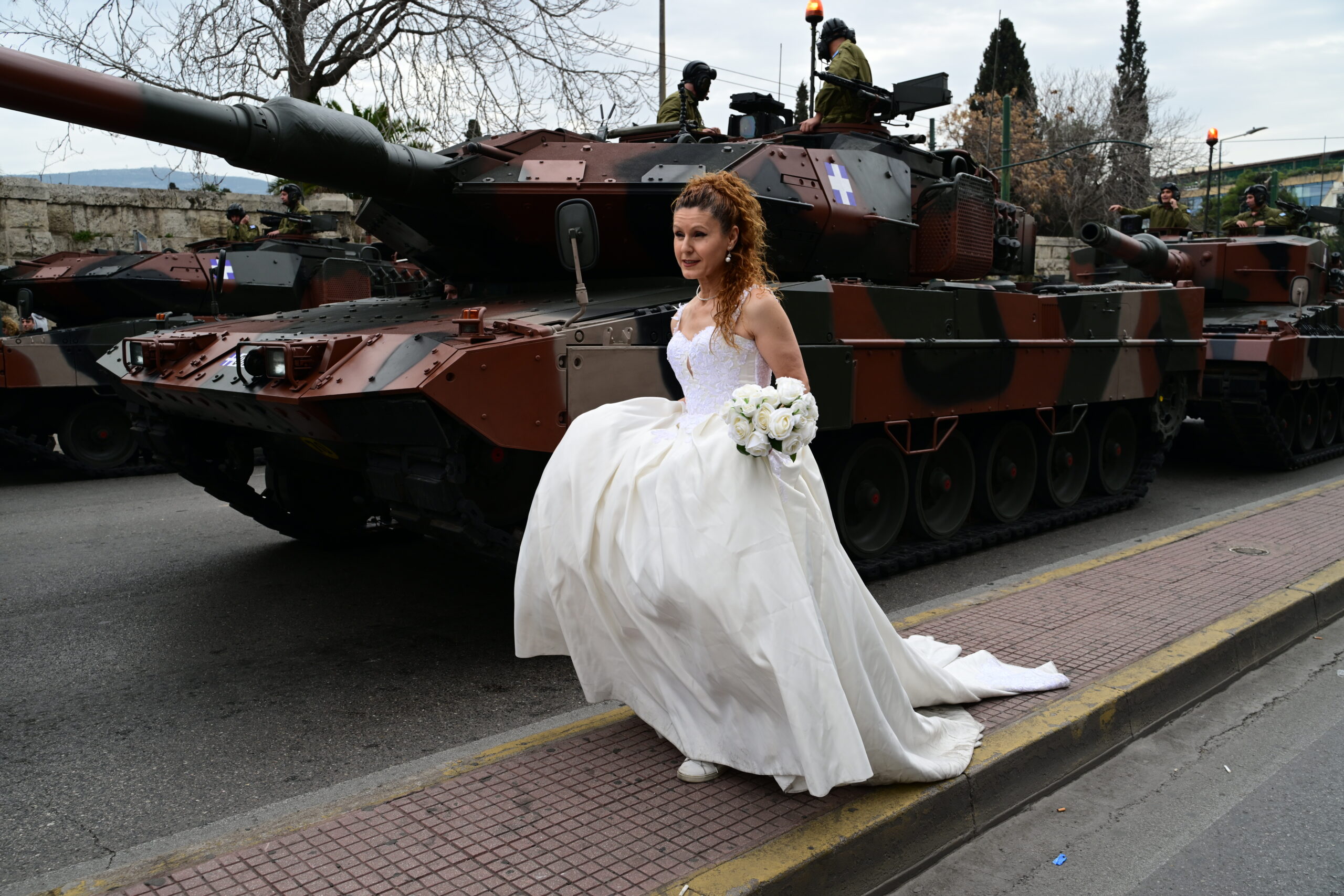 Μια ξεχωριστή νότα στη φετινή στρατιωτική παρέλαση για την εθνική επέτειο της 25ης Μαρτίου 1821 στην Αθήνα πρόσθεσε ένα νεαρό ζευγάρι, που αποφάσισε να γιορτάσει την πρώτη επέτειο του γάμου του στο ιστορικό κέντρο της πρωτεύουσας.