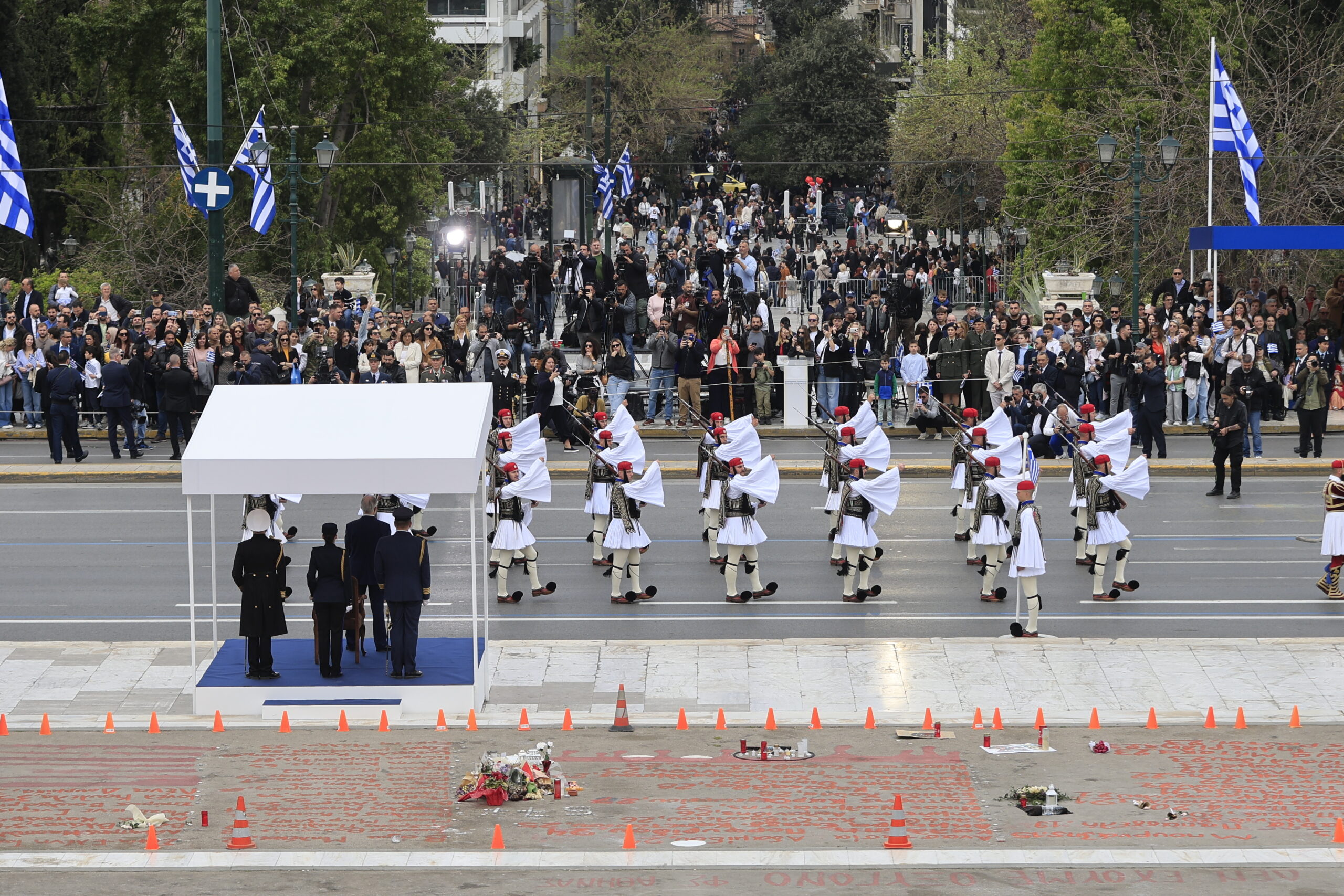 Η στρατιωτική παρέλαση ξεκίνησε στις 11:15 π.μ. στο Σύνταγμα παρουσία της πολιτικής, δικαστικής, θρησκευτικής και στρατιωτικής ηγεσίας