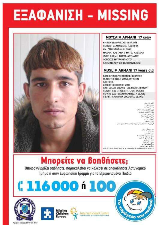 Οποιοσδήποτε έχει κάποια πληροφορία, παρακαλείται να επικοινωνήσει τηλεφωνικά με «Το Χαμόγελο του Παιδιού», όλο το 24ωρο, στην «Ευρωπαϊκή Γραμμή για τα Εξαφανισμένα Παιδιά 116000» καθώς και σε όλα τα Αστυνομικά Τμήματα της χώρας.