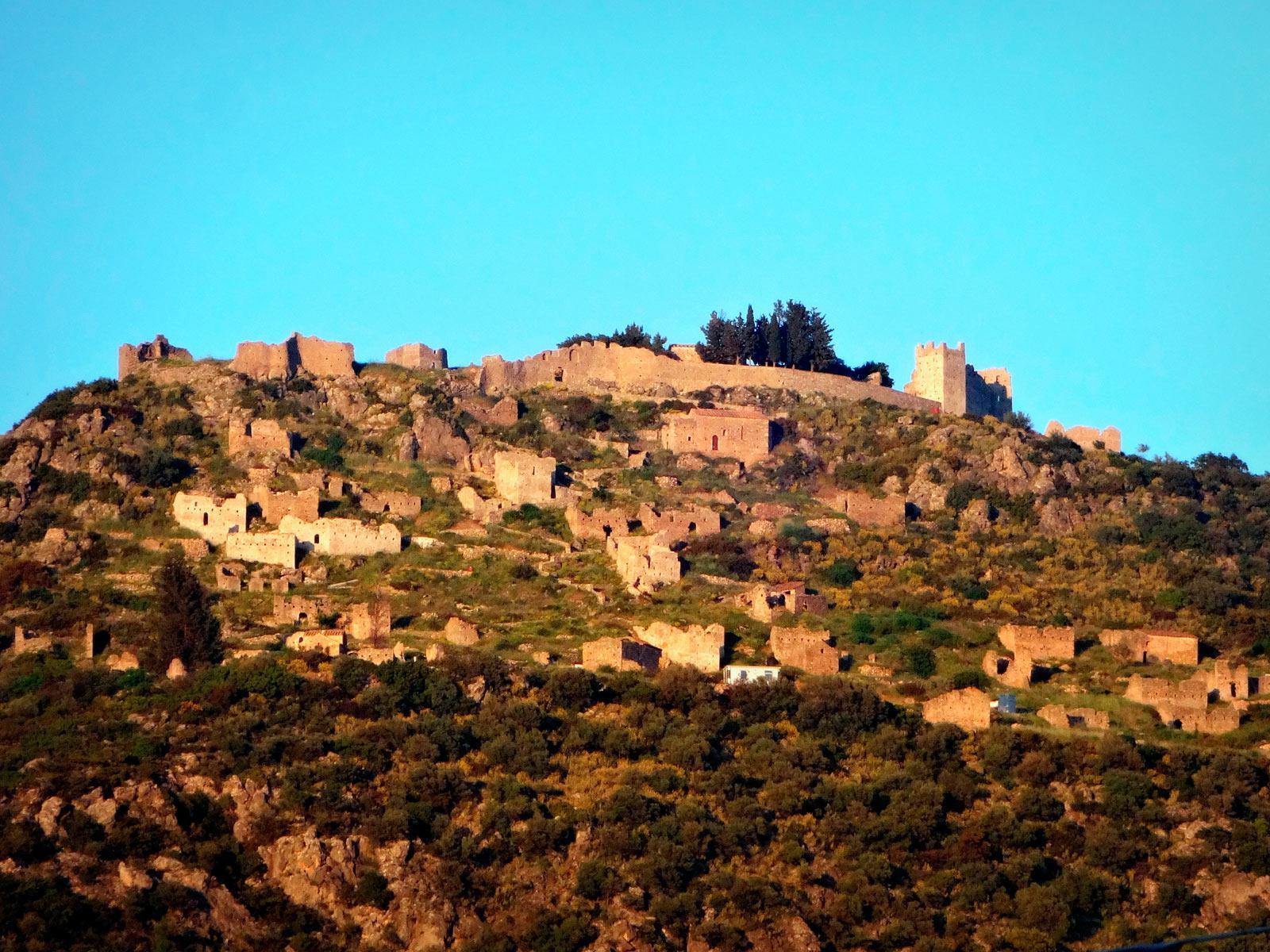 Γύρω και μέσα στο κάστρο, η κατοίκηση υπήρξε έντονη στα υστεροβυζαντινά χρόνια (13ος – 15ος αι.). Στις δυο κορυφές του λόφου διακρίνονται τα υπολείμματα του κάστρου, ενώ στη βόρεια κορυφή και στη δυτική πλαγιά μπορεί κανείς να δει τα κτίσματα του βασικού μεσαιωνικού οικισμού. Στο κάστρο σώζονται περίπου τριάντα ναοί, από τους οποίους οι δέκα, μέσα στον οικισμό.
