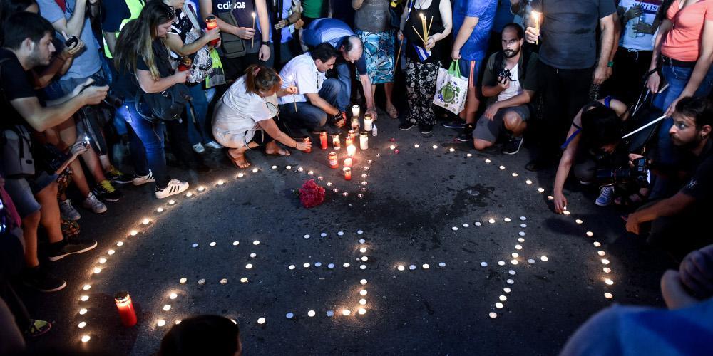 Χρησιμοποιώντας κεριά σχημάτισαν μια καρδιά καθώς και την ημερομηνία της φονικής πυρκαγιάς, πραγματοποιώντας παράλληλα βουβή διαμαρτυρία.