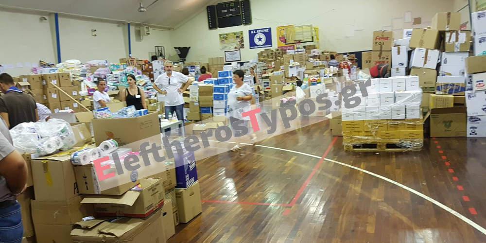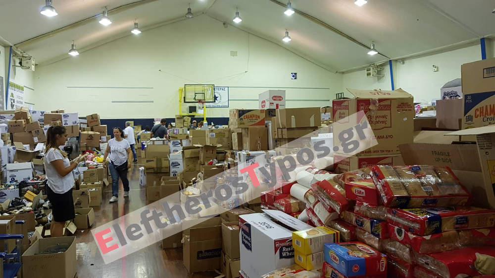 Δεκάδες εθελοντές βρίσκονται σήμερα στο Μαραθώνα και συγκεκριμένα στο Πολιτιστικό Κέντρο Νέας Μάκρης όπου, όπως φαίνεται στις αποκλειστικές φωτογραφίες του eleftherostypos.gr έχουν συγκεντρωθεί σωροί από τρόφιμα και υλικά τα οποία διατίθενται στους πυρόπληκτους κατοίκους.