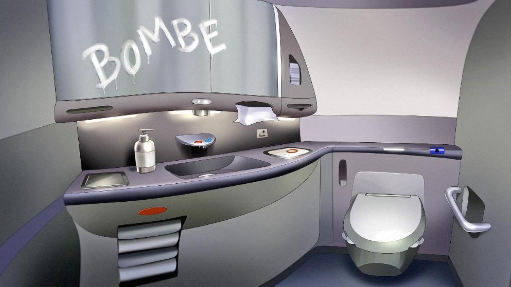 Oι επιβάτες οδηγήθηκαν όλοι μαζί σε χώρο του αεροδρομίου των Χανίων, την ώρα που έπιαναν δουλειά οι ειδικοί για να αναζητήσουν τη βόμβα. Σημειωτέον ότι η απειλή είχε εκδηλωθεί με τη λέξη “BOMBE” που είχε γραφεί σε καθρέπτη τουαλέτας του αεροσκάφους με τη χρήση σαπουνιού!