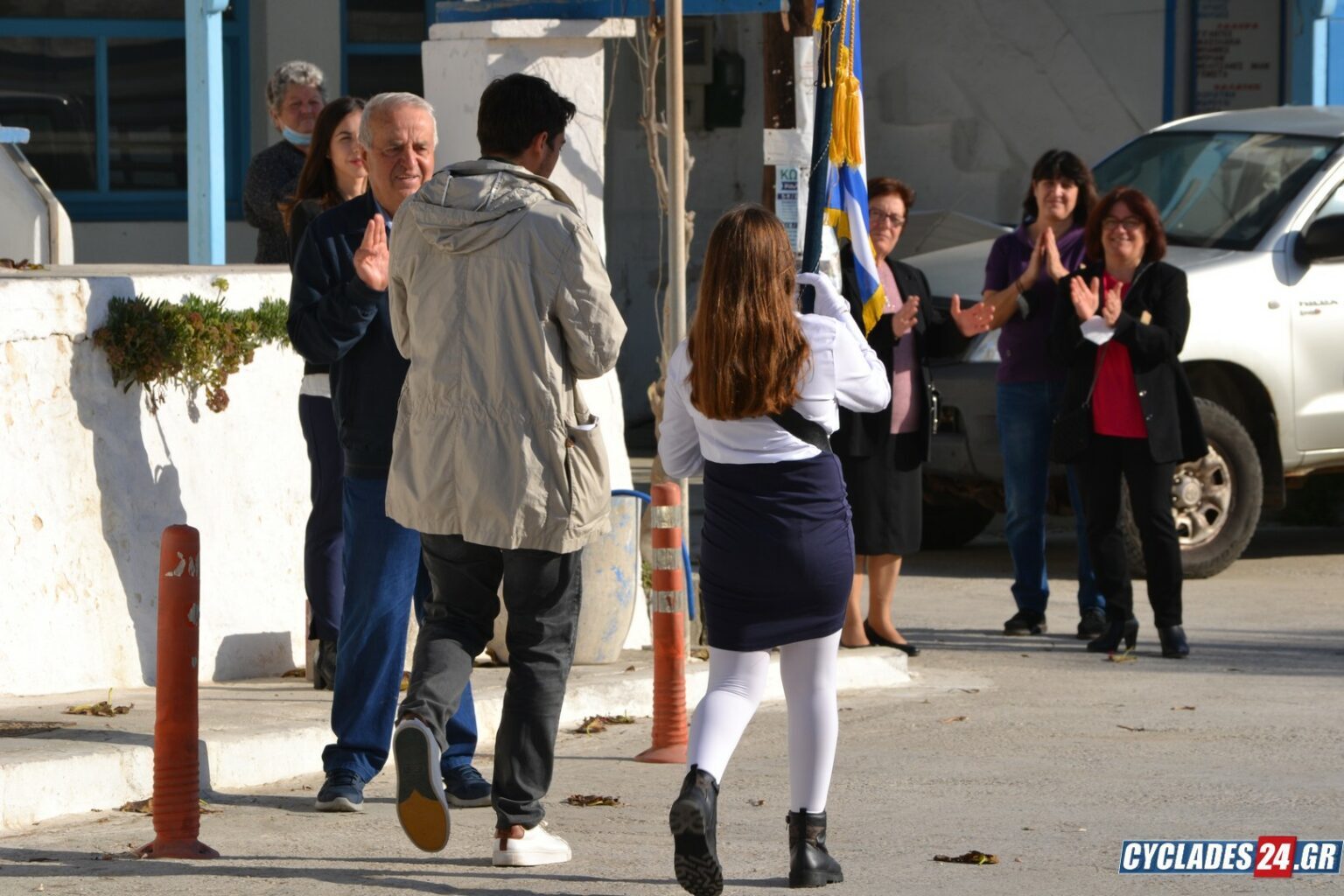 Υπερήφανη η μικρή μαθήτρια, συνοδευόμενη από τον δάσκαλό της, παρέλασε μπροστά στους λιγοστούς κατοίκους του χωριού, καταχειροκροτούμενη.