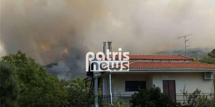 Oι φλόγες είναι κοντά στα σπίτια, ωστόσο δεν απειλούν μέχρι στιγμής τον οικισμό αλλά έχουν ζητήσει την εκκένωση του τουλάχιστον από τις πιο ευπαθείς ομάδες του πληθυσμού.