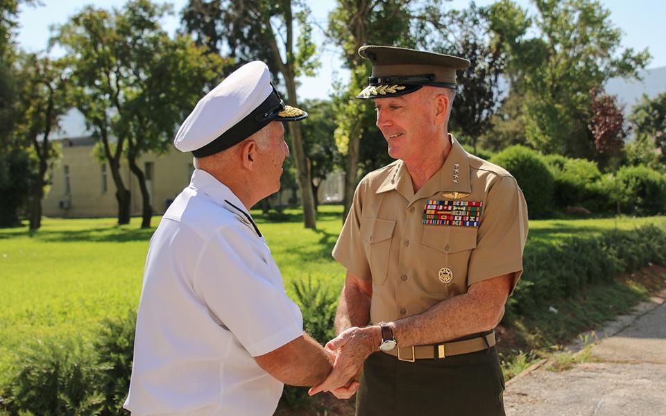 Ο Αρχηγός ΓΕΕΘΑ υποδέχθηκε την Τρίτη σε επίσημη τελετή στο στρατόπεδο «Παπάγου», τον Αμερικανό ομόλογό του, και στη συνέχεια οι δύο Αρχηγοί συζήτησαν για το διεθνές περιβάλλον ασφαλείας, με έμφαση στην ευρύτερη περιοχή της Ανατολικής Μεσογείου, της Βόρειας Αφρικής και της Μέσης Ανατολής.