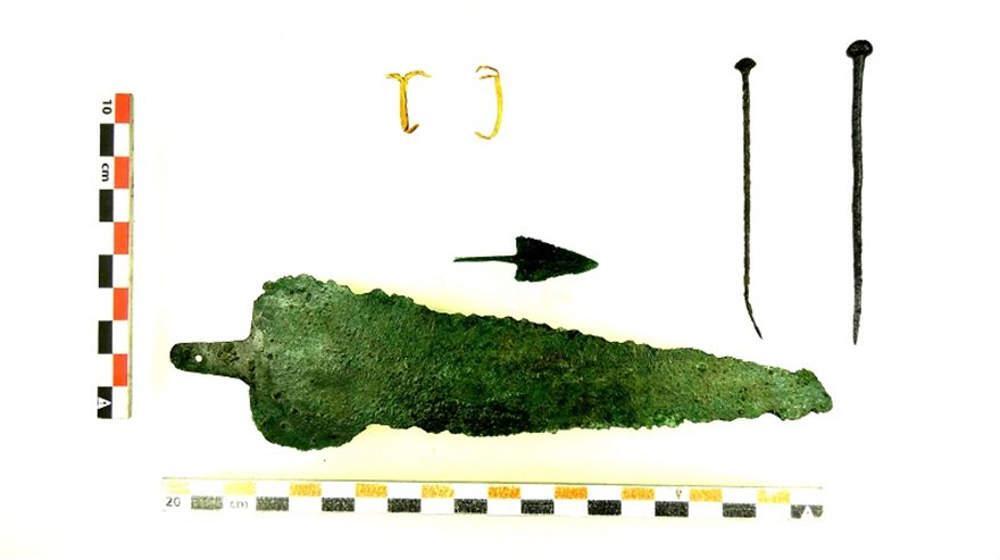 Από την έρευνά τους έχουν προέλθει χρυσό ενώτιο, οστέινη περόνη, χάλκινα νομίσματα, μελαμβαφή μικρογραφικά αγγεία του 4ου αιώνα π.Χ., όπως ληκύθια, πυξίδα, πήλινο ειδώλιο χοίρου, άβαφη τριφυλλόσχημη οινοχόη και πρόχους ρωμαϊκών χρόνων.