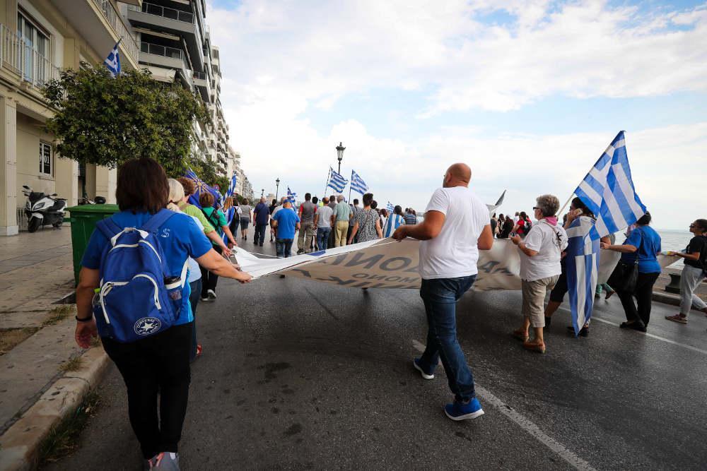Με συνθήματα, όπως «όχι στο ξεπούλημα της Μακεδονίας», «Ελλάς Ελλάς Μακεδονία» και «Κάτω τα χέρια από την Μακεδονία» διαδήλωσαν για την ελληνικότητα της Μακεδονίας.