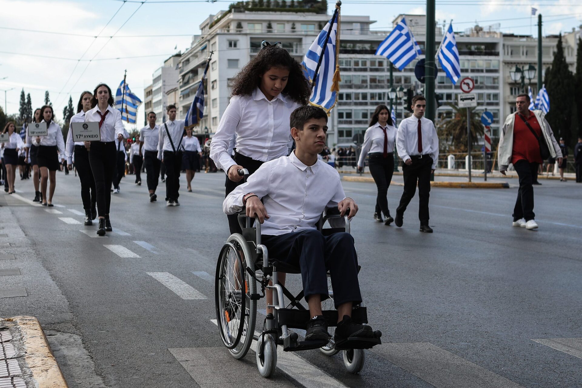 Στην παρέλαση συμμετείχαν και τα 235 σχολεία της Α’ Αθηνών (134 δημοτικά, 50 γυμνάσια και 51 λύκεια, γενικής και ειδικής παιδείας), με τον σημαιοφόρο τους και πέντε παραστάτες το καθε ένα, η ομάδα των Special Olympics, καθώς επίσης και οι πρόσκοποι.
