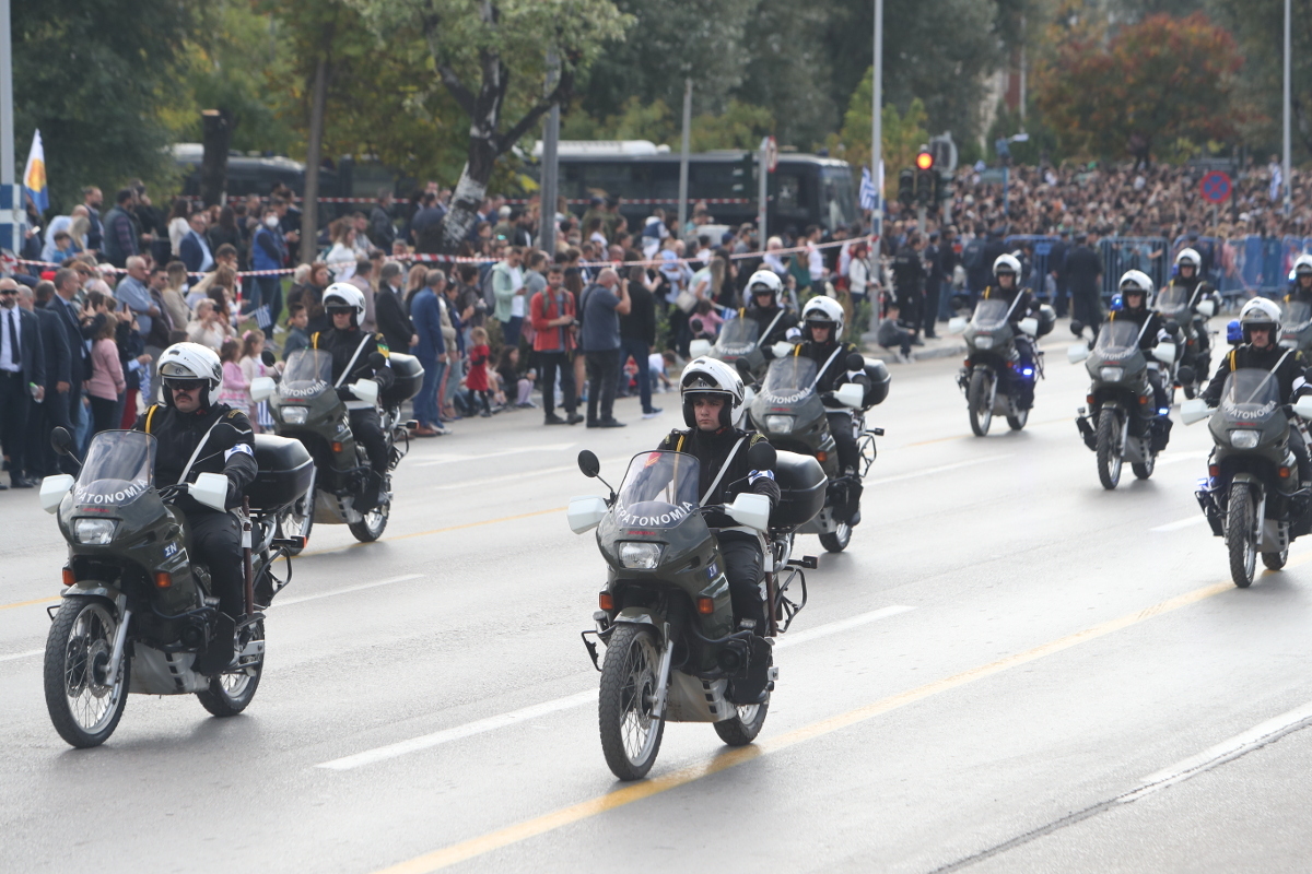 Η παρέλαση άνοιξε με τη Φιλαρμονική του Δήμου Θεσσαλονίκης και ακολούθησε ο έχων το γενικό πρόσταγμα των πολιτικών τμημάτων. Νωρίτερα, η Πρόεδρος της Δημοκρατίας κατέθεσε στεφάνι στο Ηρώον του Γ’ Σώματος Στρατού.