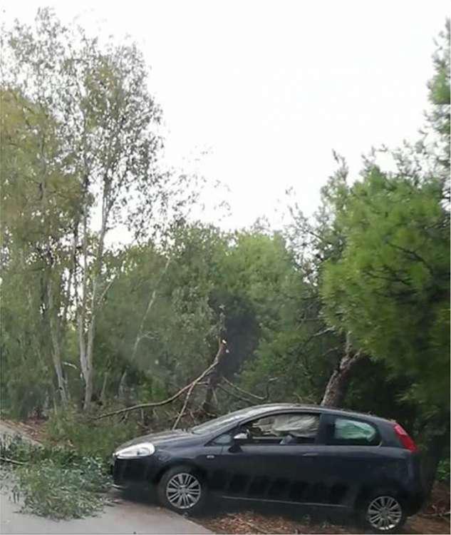 Ο δρόμος ήταν ολισθηρός λόγω της μπόρας στην Αττική και ο οδηγός εξετράπη και προσέκρουσε σε δέντρο, το οποίο έκοψε.