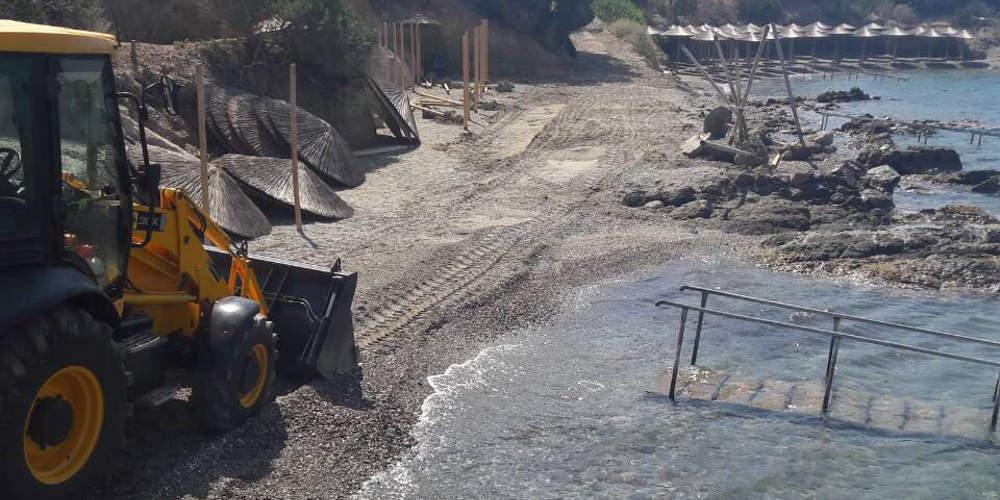 Μεταξύ άλλων κατεδαφίζονται κατασκευές από ξύλο ή μπετό (στέγαστρα, αποδυτήρια, διάδρομος, τουαλέτες, δάπεδο με ψαθωτό στέγαστρο κ.ά.) καθώς και παρεμβάσεις στο φυσικό περιβάλλον του αιγιαλού.