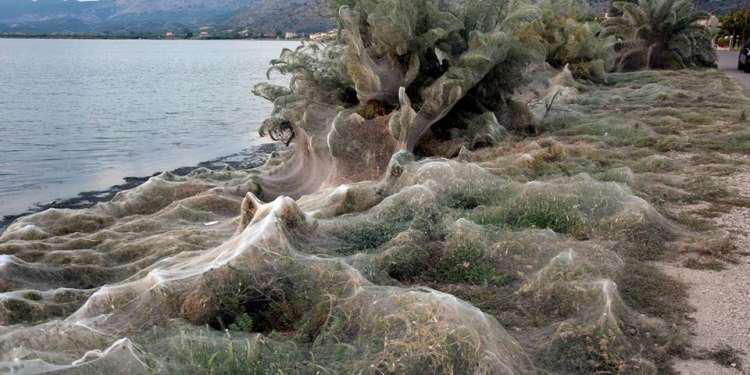 Οι κάτοικοι κάνουν λόγο για πρωτοφανές γεγονός επισημαίνοντας ότι τις τελευταίες μέρες έκαναν την εμφάνισή τους σμήνη κουνουπιών. Στη συνέχεια προφανώς αράχνες άπλωσαν το τεράστιο πέπλο, που φαίνεται στις φωτογραφίες, με αποτέλεσμα να εγκλωβιστούν τα κουνούπια στο Αιτωλικό.