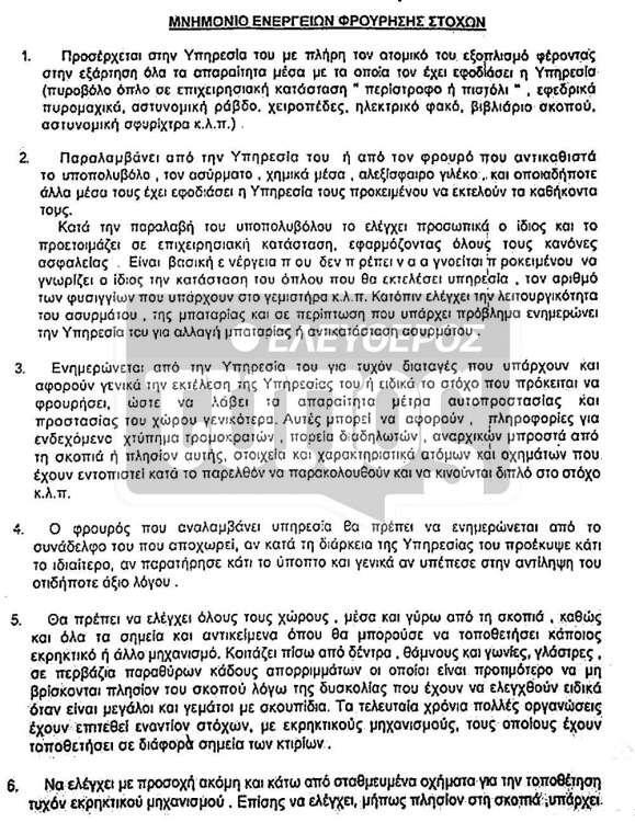 Μνημόνιο ενεργειών φρούρησης στόχων