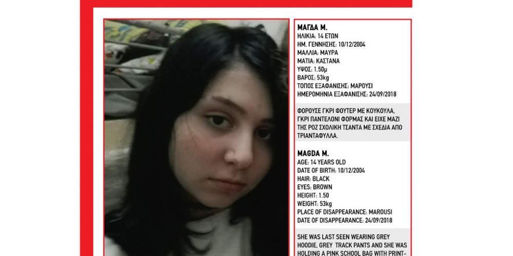 Η Μάγδα Μ. έχει ύψος 1,50 μ., ζυγίζει 53 κιλά, έχει μαύρα μαλλιά και καστανά μάτια. Φορούσε γκρι παντελόνι φόρμας, γκρι φούτερ με κουκούλα και είχε μαζί της ροζ σχολική τσάντα με σχέδια από τριαντάφυλλα.