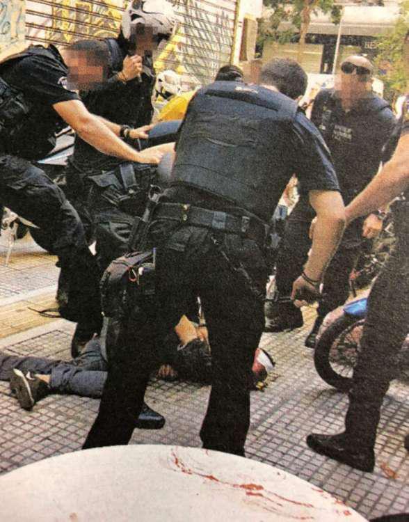 Σύμφωνα με την περιγραφή των εικόνων που κάνει η εφημερίδα ο 33χρονος είναι πεσμένος, έχει ακινητοποιηθεί και οι αστυνομικοί τον πατάνε στα πόδια και του τραβάνε τα χέρια. Χωρίς προφανή λόγο ένας από τους αστυνομικούς πλησιάζει και τον πατάει στον λαιμό. Κάποια στιγμή ένας από τους αστυνο9μικούς πλησιάζει και κλοτσάει τον Ζακ Κωστόπουλο. Λίγο αργότερα όπως αναφέρει η εφημερίδα οι αστυνομικοί σέρνουν τον 33χρονο στο πεζοδρόμιο.