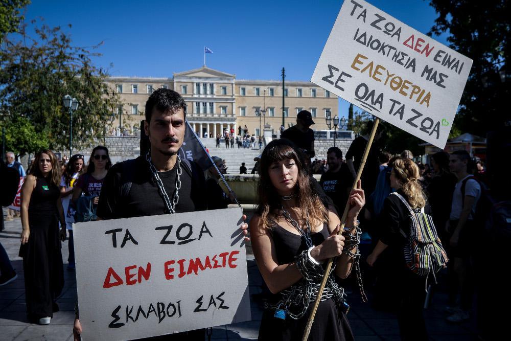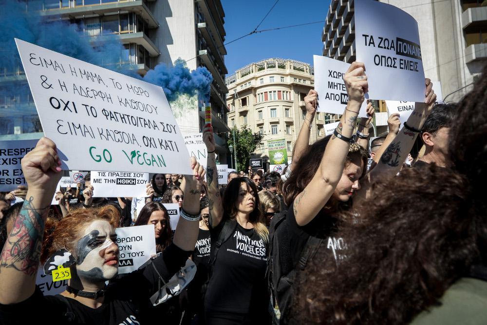 Η συγκέντρωση έγινε στο Θησείο και στη συνέχεια ακολούθησε πορεία προς το Σύνταγμα, με αφορμή την Παγκόσμια Ημέρα των Ζώων.