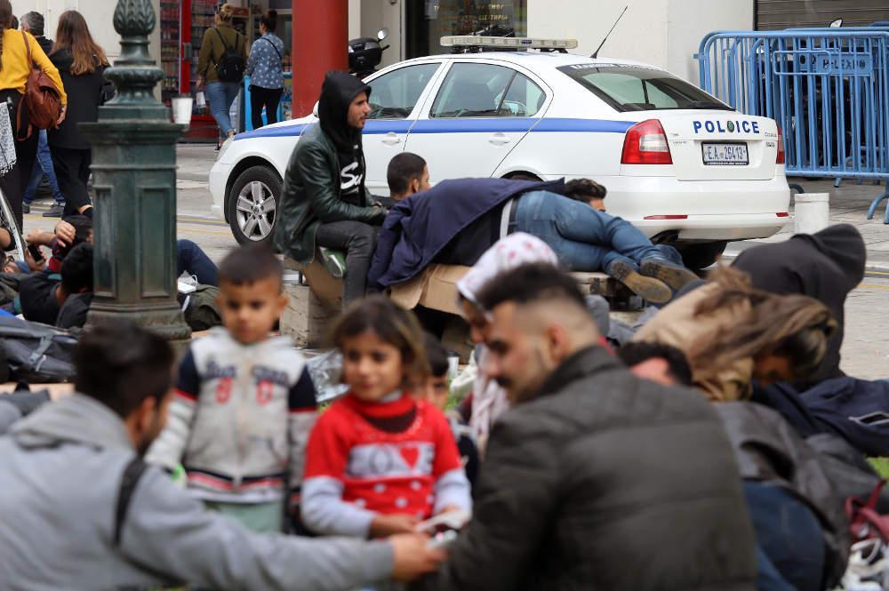 Δεκάδες άτομα κοιμούνται έξω από το Αστυνομικό Τμήμα Λευκού Πύργου, ανάμεσά τους και μικρά παιδιά.