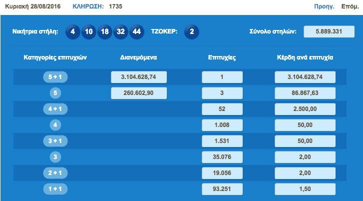 Ο υπερτυχερός έπαιξε ένα απλό δελτίο με έξι στήλες αξίας τριών ευρώ.