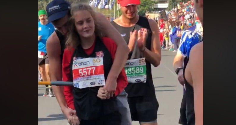Μάλιστα, στα τελευταία μέτρα, έχοντας μπει πια στο Παναθηναϊκό Στάδιο, η παρέα της την σήκωσε στα χέρια και έφτασε πεζή στον τερματισμό μέσα σε αποθέωση από όσους ήταν μπροστά.