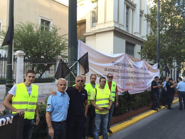 Συγκέντρωση διαμαρτυρίας πραγματοποιεί, έξω από το Συμβούλιο της Επικρατείας, αντιπροσωπεία της Πανελλήνιας Ομοσπονδίας Αστυνομικών Υπαλλήλων αυτήν την ώρα.