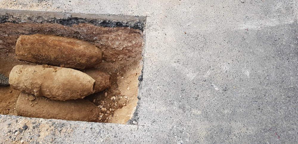 Οι ναρκαλιευτές αφού έλαβαν υπόψη τους την ασφάλεια των πολιτών και των εγκαταστάσεων, προχώρησαν στις δέουσες ενέργειες για την απομάκρυνση του πολεμικού υλικού που είχε εντοπισθεί κατά τη διάρκεια χωματουργικών εργασιών στο συγκεκριμένο δρόμο.