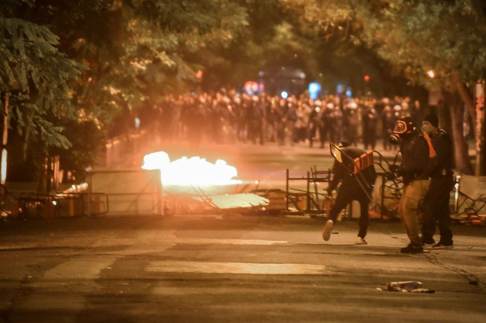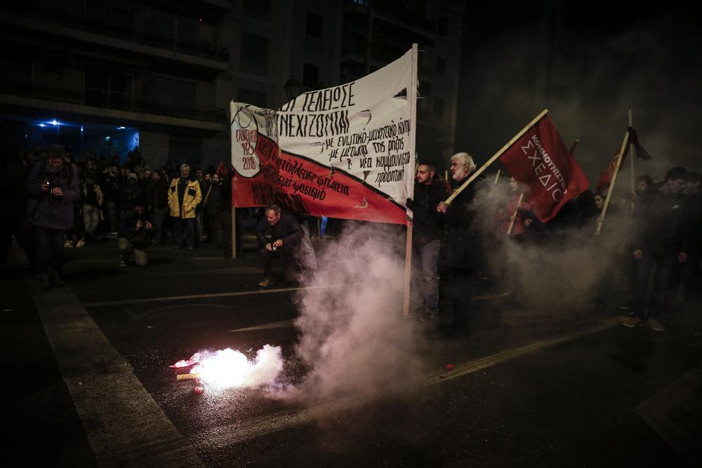 Παράλληλα νεαροί επιτίθενται με ναυτικές φωτοβολίδες στους αστυνομικούς.