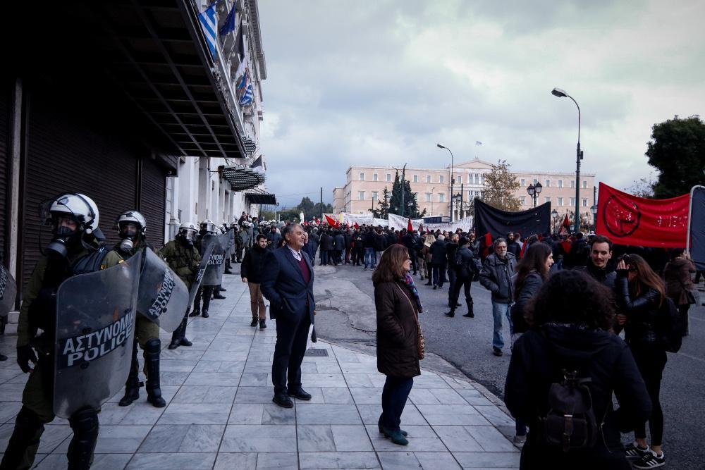 Όταν έκλεισαν οι πύλες του Πολυτεχνείου, φοιτητικοί σύλλογοι πραγματοποίησαν προσυγκέντρωση και με πορεία κατευθύνθηκαν στην πλατεία Κλαυθμώνος περιμένοντας να ξεκινήσει ο κύριος όγκος της διαδήλωσης. Του συλλαλητηρίου προπορεύεται ο σύνδεσμος φυλακισθέντων εξορισθέντων αντιστασιακών 1967-1974.