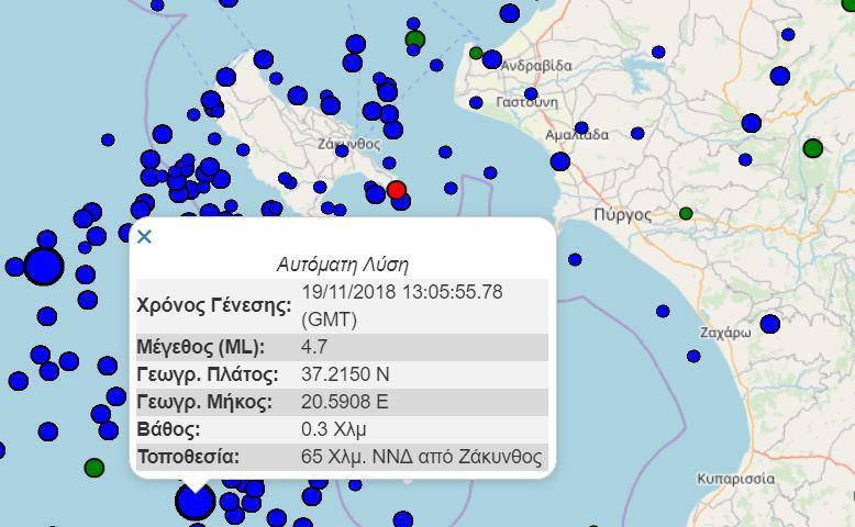 Ο σεισμός προέρχεται από απόσταση 273 χλμ δυτικά της Αθήνας και το επίκεντρο εντοπίζεται στον θαλάσσιο χώρο 30 χλμ νοτιοδυτικά της Ζακύνθου.