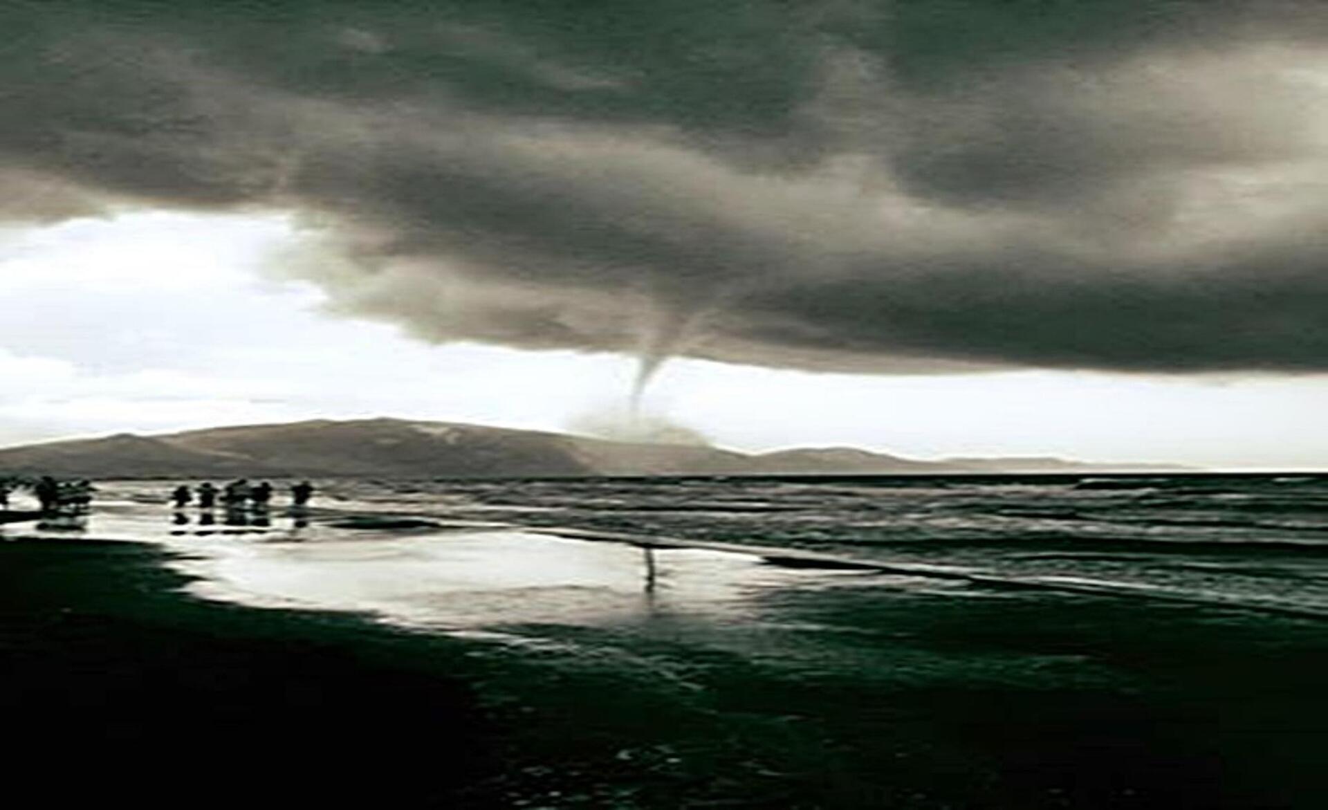 Πρόκειται για ένα ανεμοστρόβιλο που «σάρωσε» την περιοχή πάνω από τη θάλλασα και το οποίο όχι απλά και μόνο θαυμασαν, αλλά φρόντισαν και να το απαθανατίσουν.