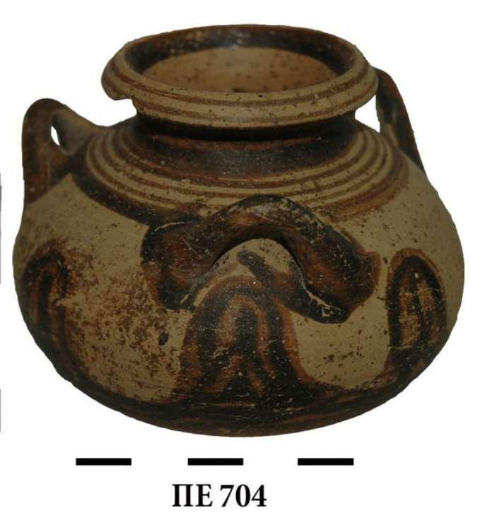 Εκτός από την κεραμική ντόπιας παραγωγής, αξιοσημείωτος είναι ο αριθμός των «εισηγμένων» αγγείων από την Αργολίδα και ίσως και από την Κρήτη.