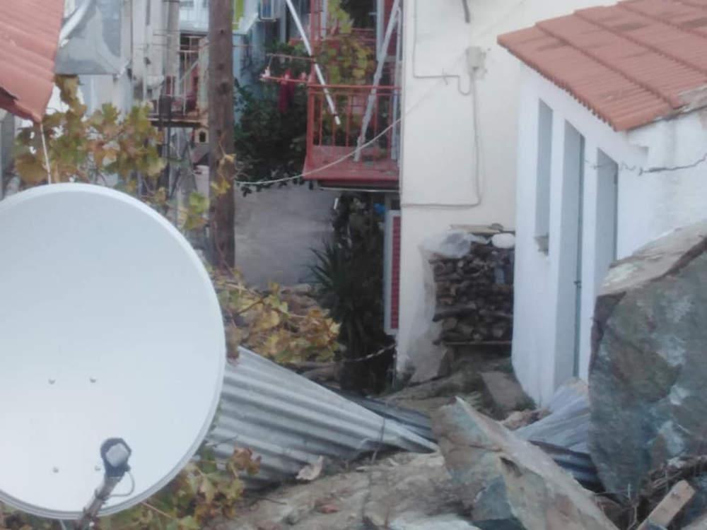 Οι βράχοι έπεσαν επάνω σε σπίτια, κτίρια, μηχανάκια, προκαλώντας μεγάλες υλικές ζημιές, όμως ευτυχώς χωρίς κανένα τραυματισμό ανθρώπου.